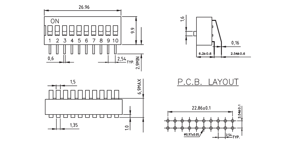 | Pitch | 2.54 mm | |