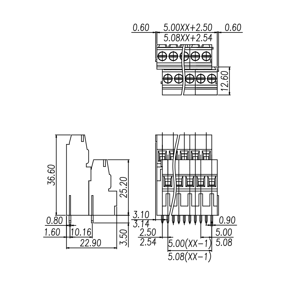 | Pitch / Poles | 5.00 mm / 2 ~ 24 poles | ||