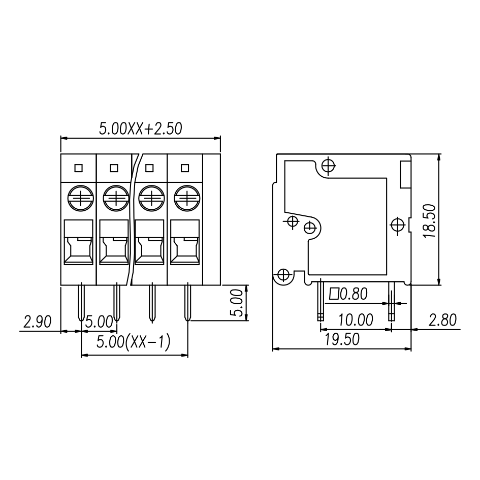 | Pitch / Poles | 5.00 mm / 1 ~ 30 poles | ||
