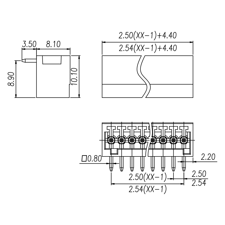 | Pitch / Poles | 2.50 mm / 2 ~ 24 poles | ||