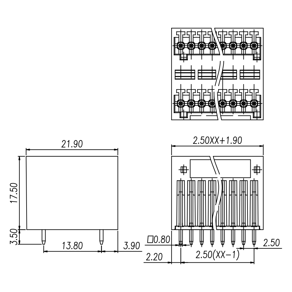 | Pitch / Poles | 2.50 mm / 2 ~ 24 poles | ||