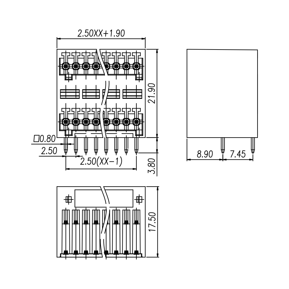 | Pitch / Poles | 2.50 mm / 2 ~ 24 poles | ||