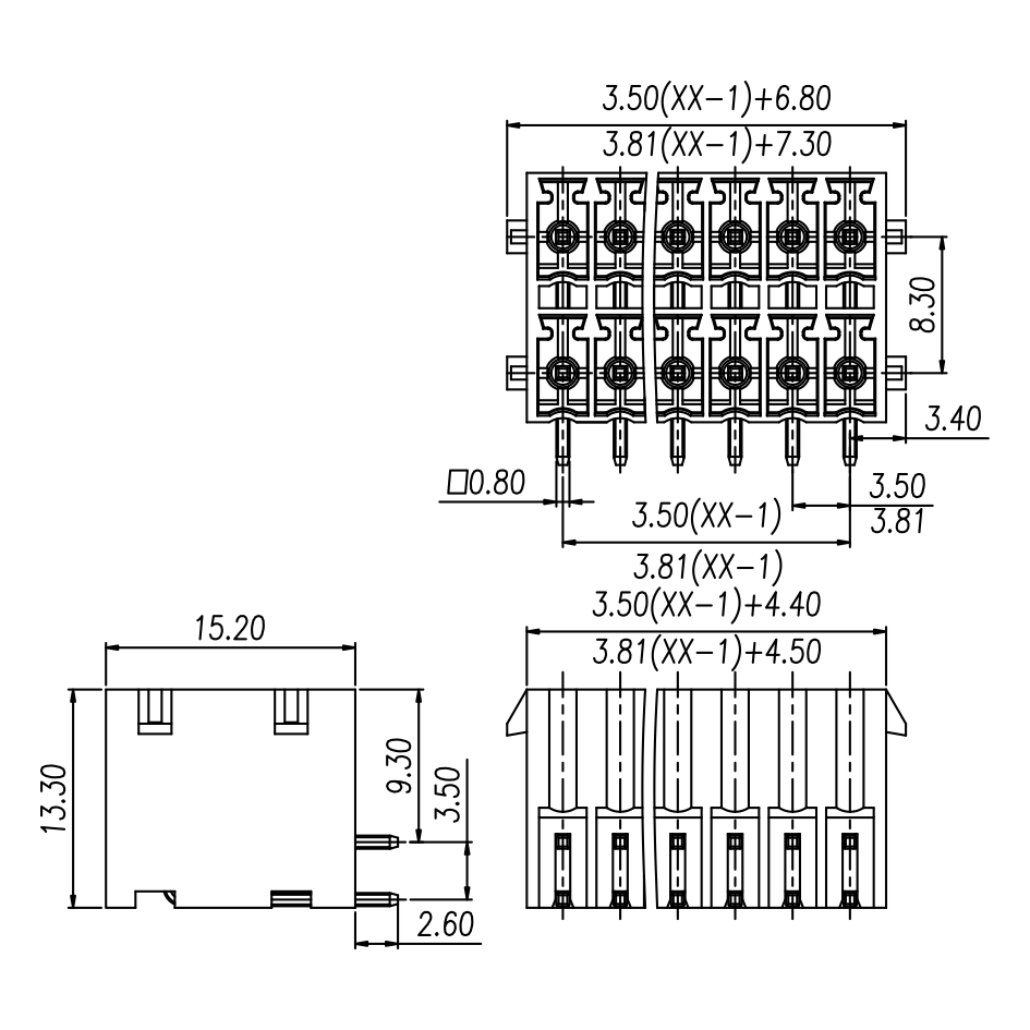 | Pitch / Poles | 3.81 mm / 2 ~ 24 poles | ||