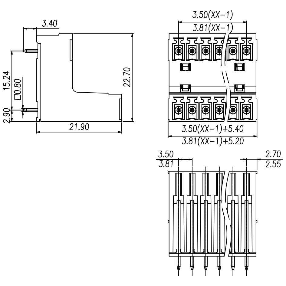 | Pitch / Poles | 3.50 mm / 2 ~ 24 poles | ||