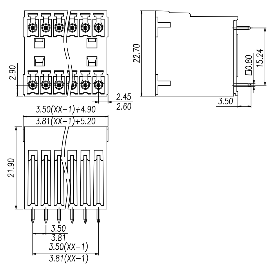 | Pitch / Poles | 3.81 mm / 2 ~ 24 poles | ||