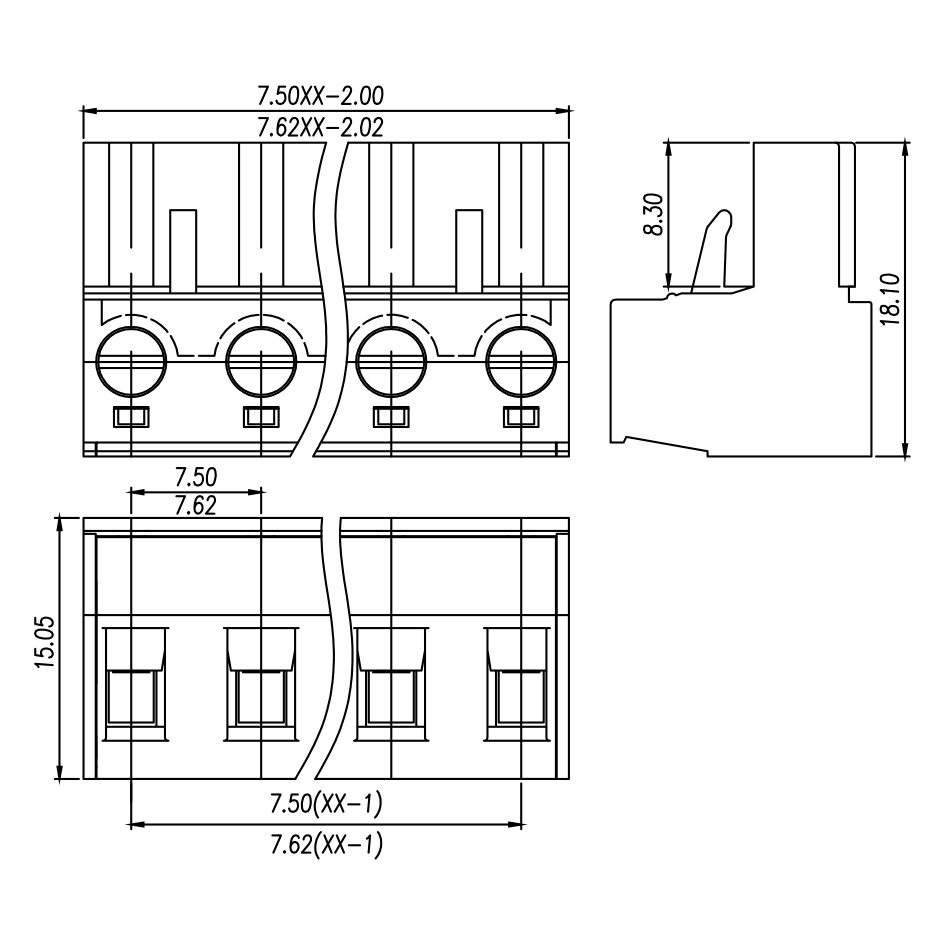 | Pitch / Poles | 7.62 mm / 2 ~ 24 poles | ||