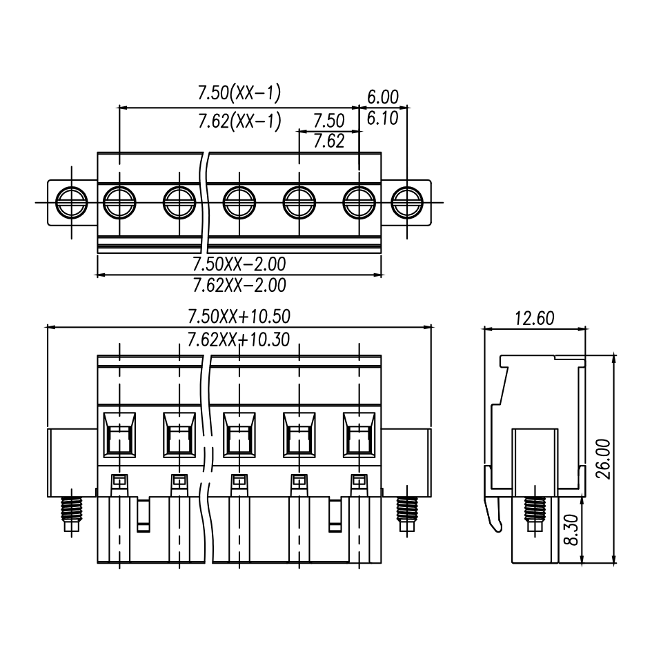 | Pitch / Poles | 7.62 mm / 2 ~ 24 poles | ||