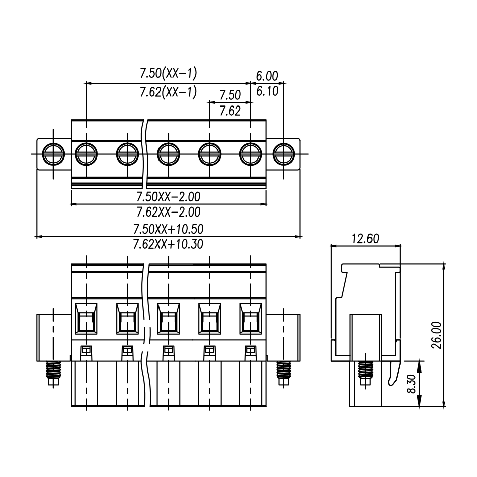 | Pitch / Poles | 7.50 mm / 2 ~ 24 poles | ||