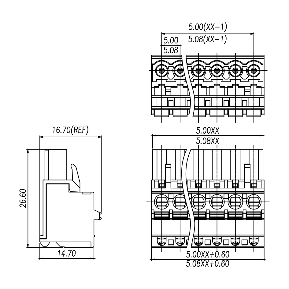 | Pitch / Poles | 5.08 mm / 2 ~ 24 poles | ||