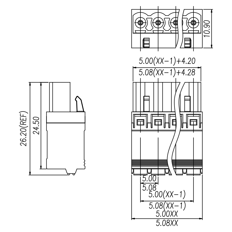 | Pitch / Poles | 5.08 mm / 2 ~ 24 poles | ||