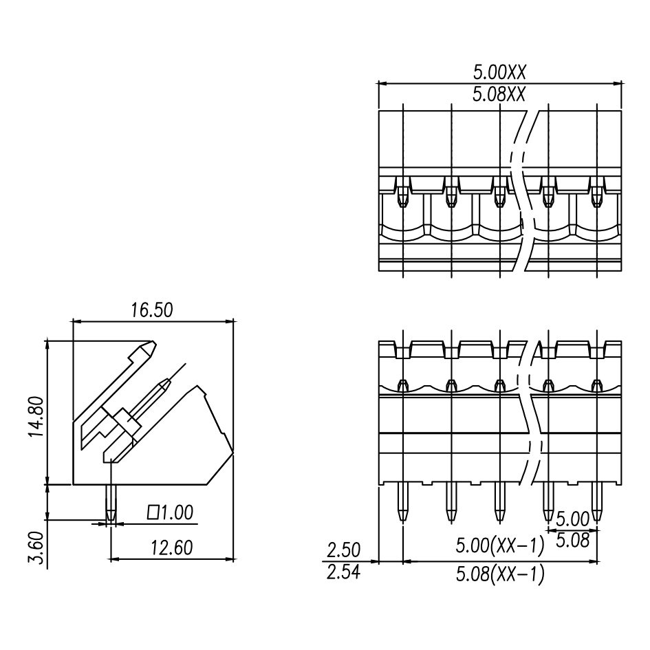 | Pitch / Poles | 5.08 mm / 2 ~ 24 poles | ||
