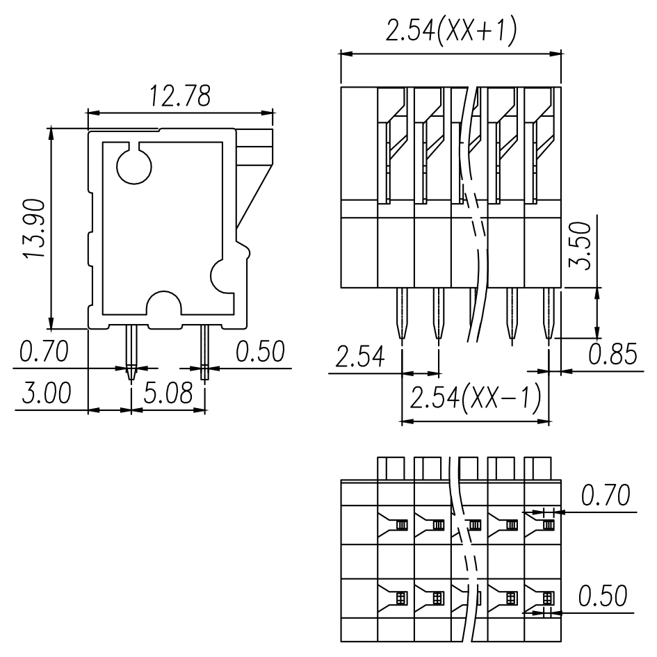 | Pitch / Poles | 2.54 mm / 1 ~ 30 poles | ||