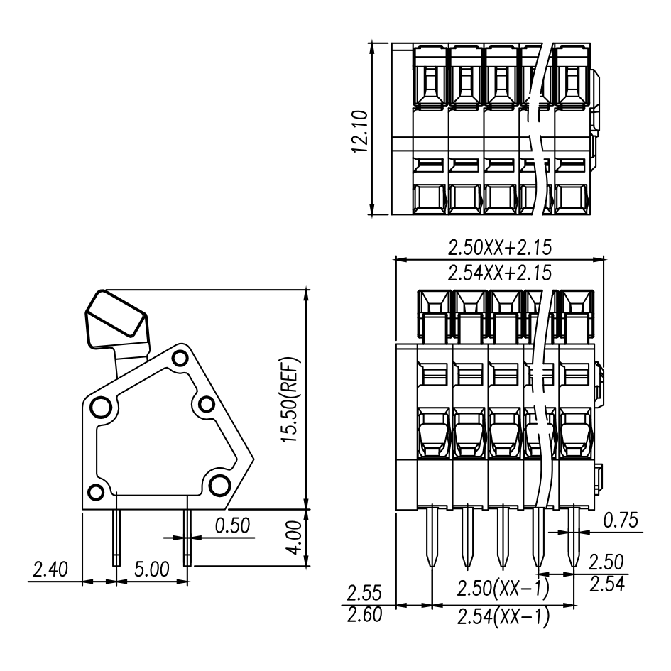 | Pitch / Poles | 2.54 mm / 1 ~ 30 poles | ||