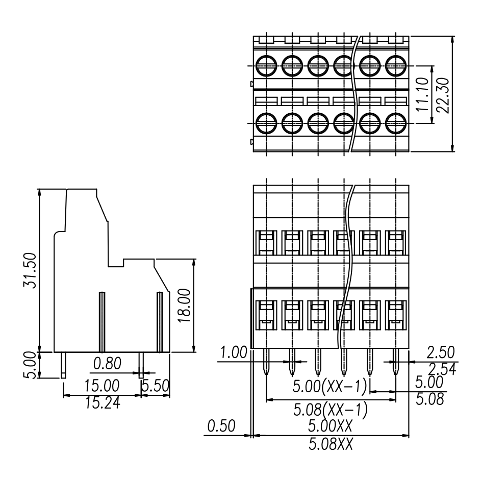 | Pitch / Poles | 5.00 mm / 2 ~ 24 poles | ||
