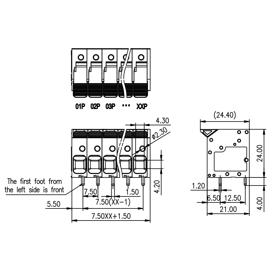 | Pitch / Poles | 7.50 mm / 2 ~ 24 poles | ||