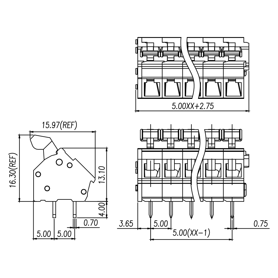 | Pitch / Poles | 5.00 mm / 2 ~ 30 poles | ||