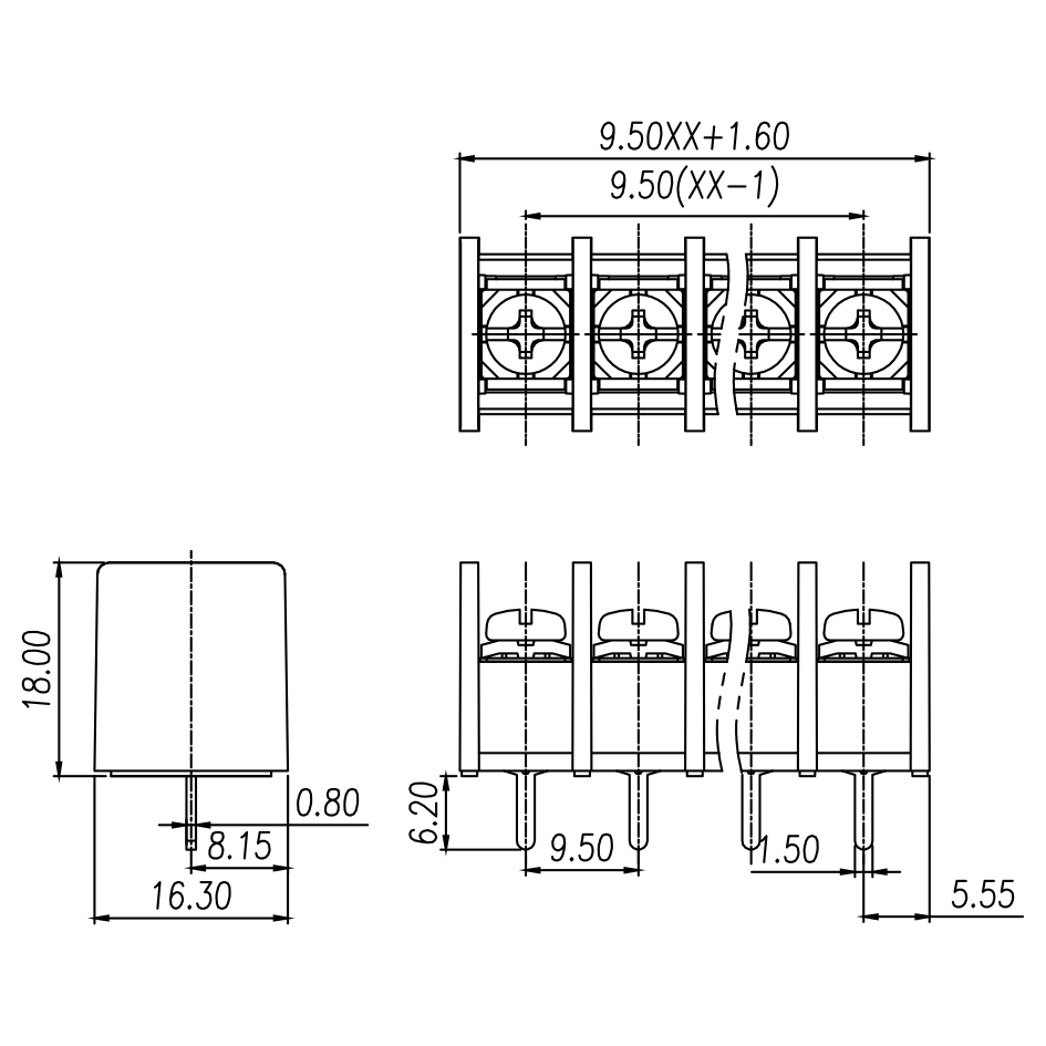 | Pitch / Poles | 9.50 mm / 2 ~ 24 poles | |
