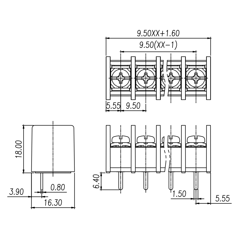 | Pitch / Poles | 9.50 mm / 2 ~ 24 poles | |