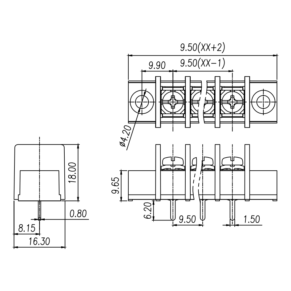 | Pitch / Poles | 9.50 mm / 2 ~ 22 poles | |
