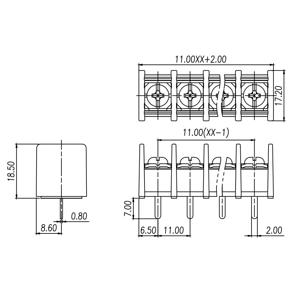 | Pitch / Poles | 11.00 mm / 2 ~ 24 poles | |