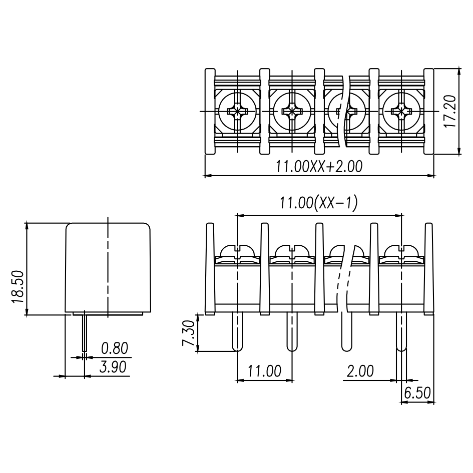 | Pitch / Poles | 11.00 mm / 2 ~ 24 poles | |