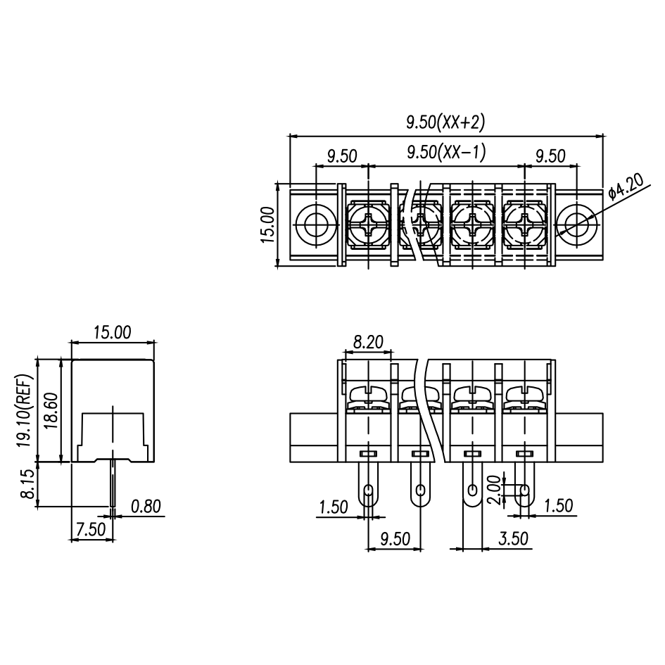 | Pitch / Poles | 9.50 mm / 2 ~ 20 poles | |