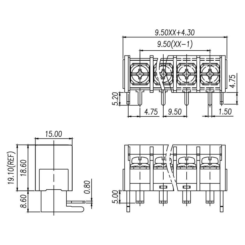 | Pitch / Poles | 9.50 mm / 2 ~ 22 poles | |