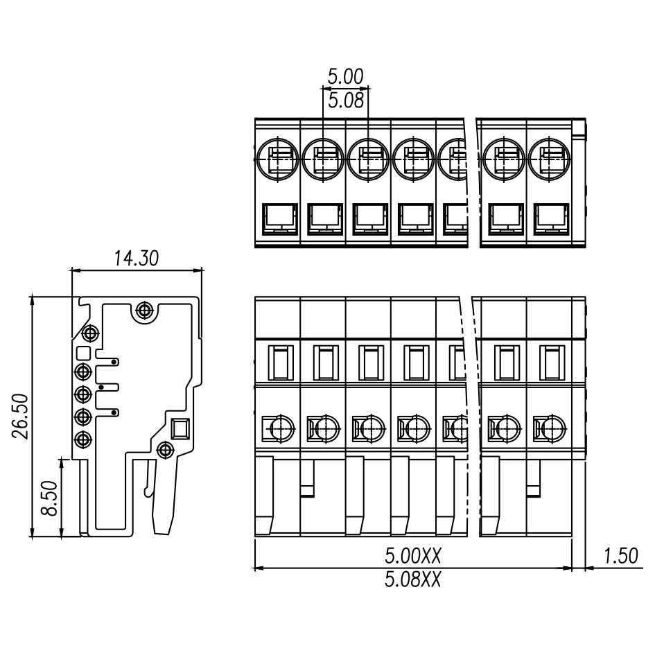 | Pitch / Poles | 5.08 mm / 2 ~ 24 poles | ||