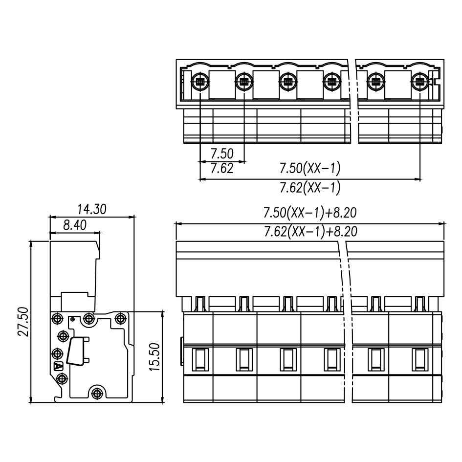| Pitch / Poles | 7.50 mm / 2 ~ 24 poles | ||