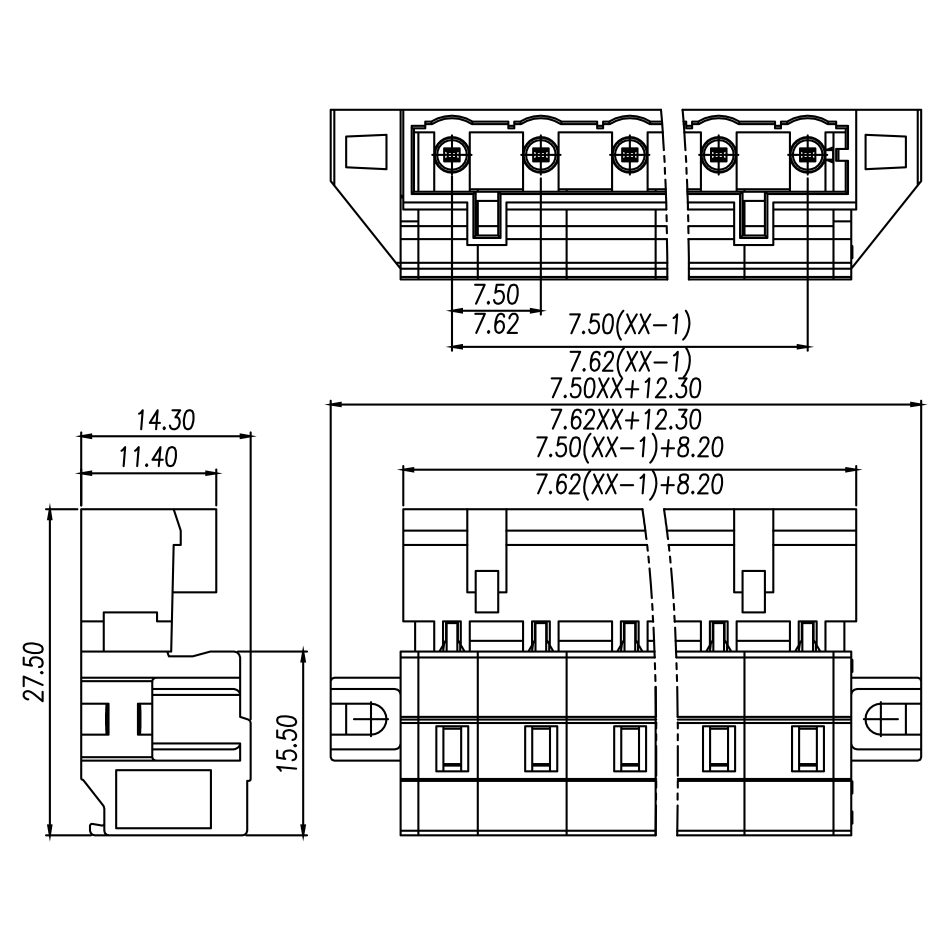 | Pitch / Poles | 7.50 mm / 2 ~ 24 poles | ||