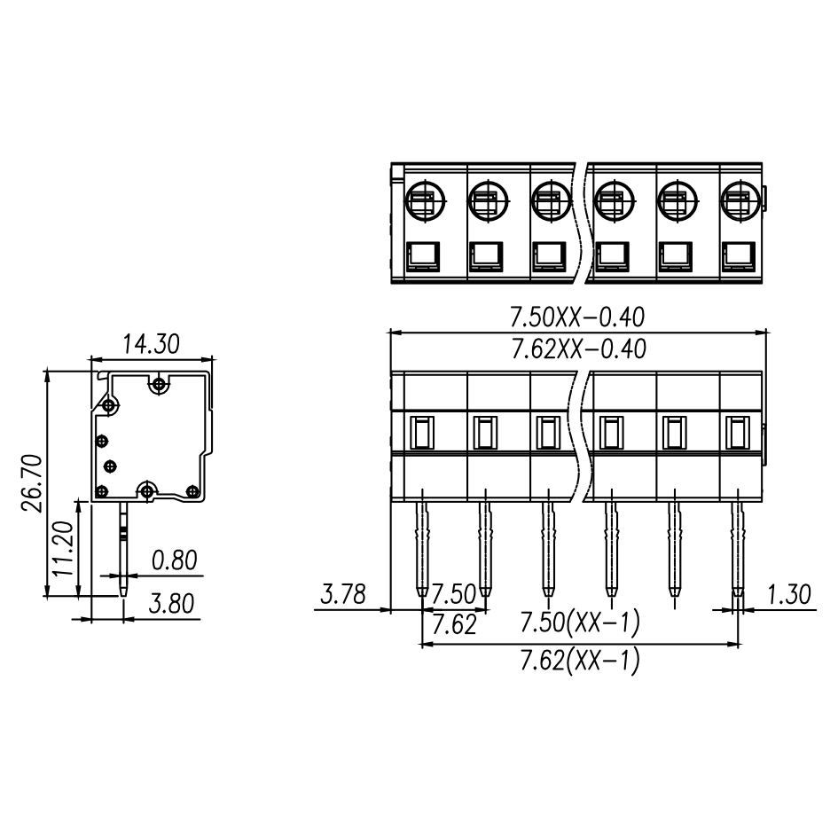| Pitch / Poles | 7.62 mm / 2 ~ 24 poles | ||