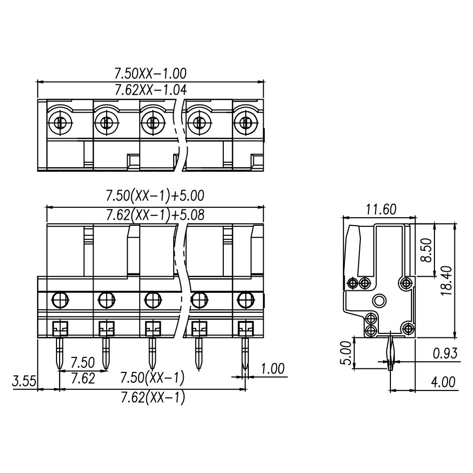 | Pitch / Poles | 7.50 mm / 2 ~ 24 poles | ||