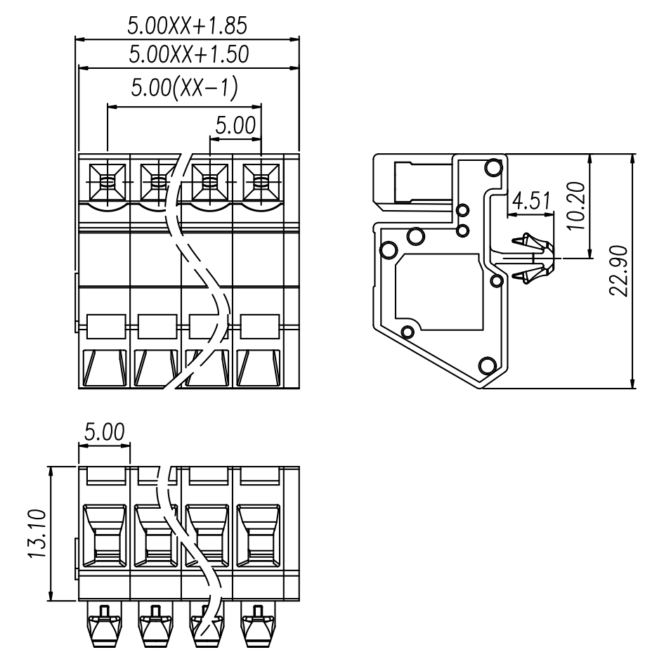 | Pitch / Poles | 5.00 mm / 2 ~ 24 poles | ||