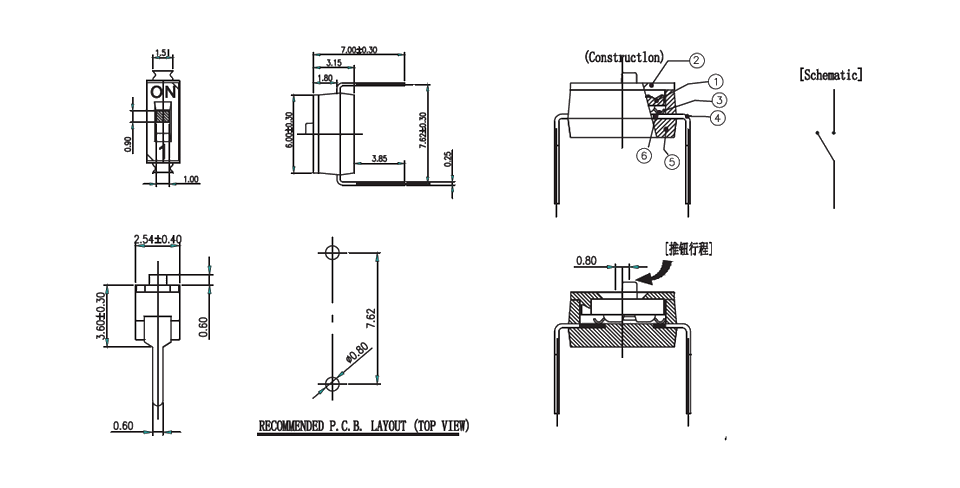 | Operating Force | 1000 g Max | |