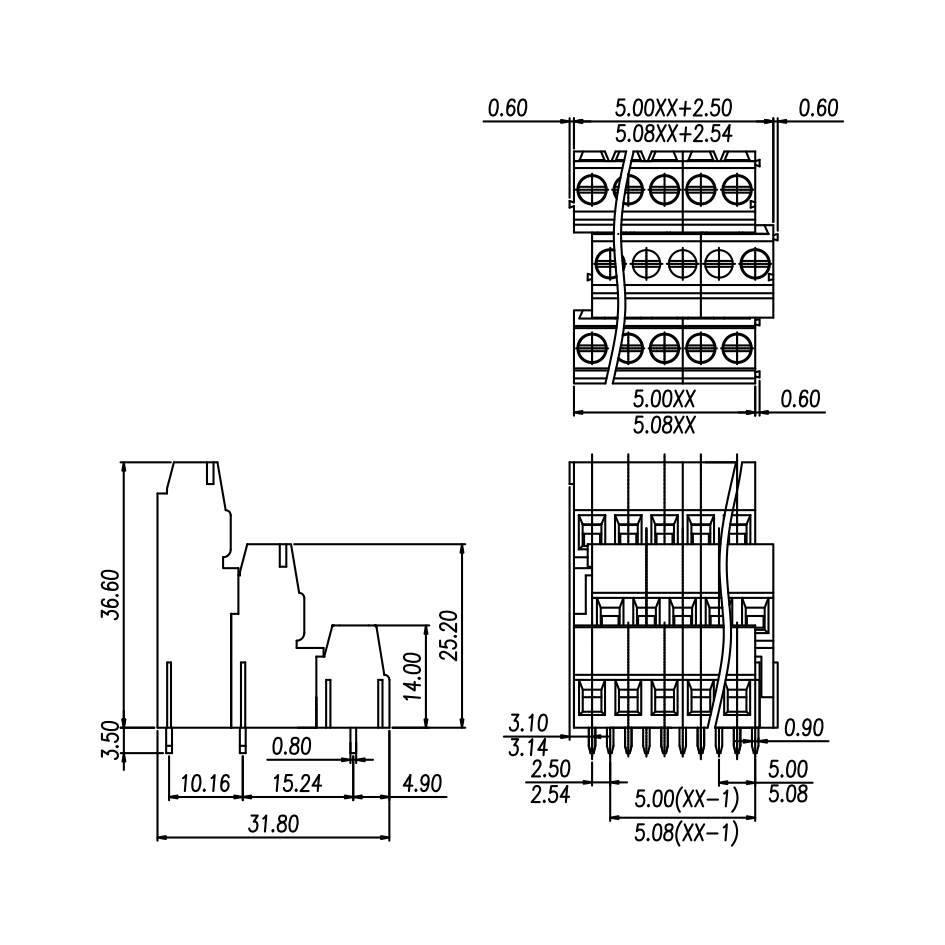 | Pitch / Poles | 5.08 mm / 2 ~ 24 poles | ||