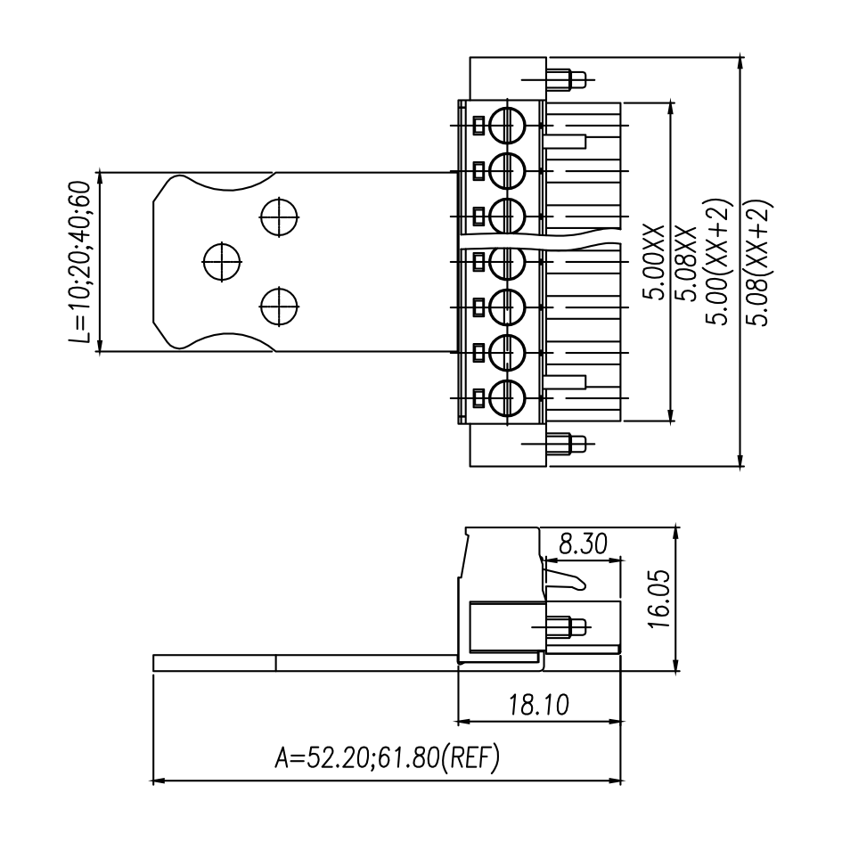 | Pitch / Poles | 5.08 mm / 2 ~ 24 poles | ||