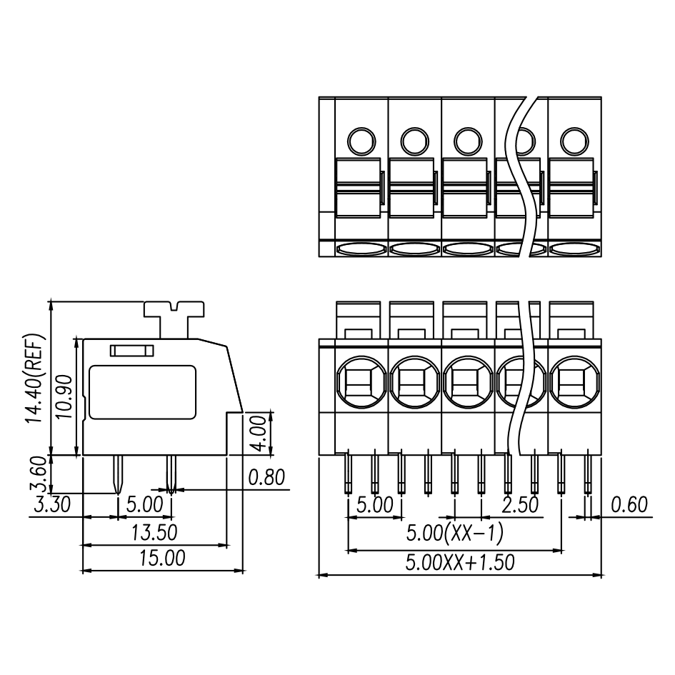| Pitch / Poles | 5.00 mm / 1 ~ 30 poles | ||