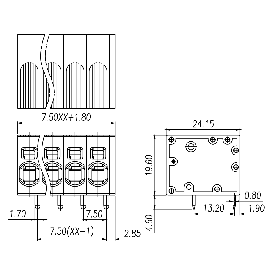 | Pitch / Poles | 7.50 mm / 2 ~ 18 poles | ||