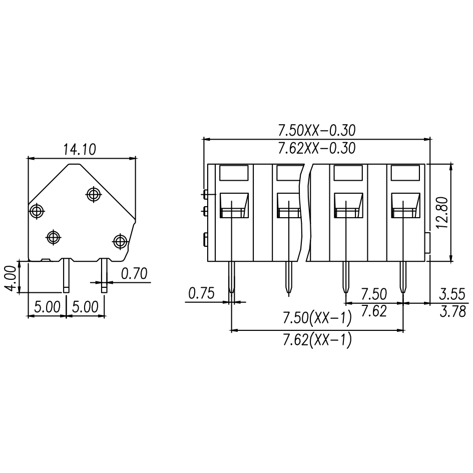 | Pitch / Poles | 7.62 mm / 2 ~ 30 poles | ||