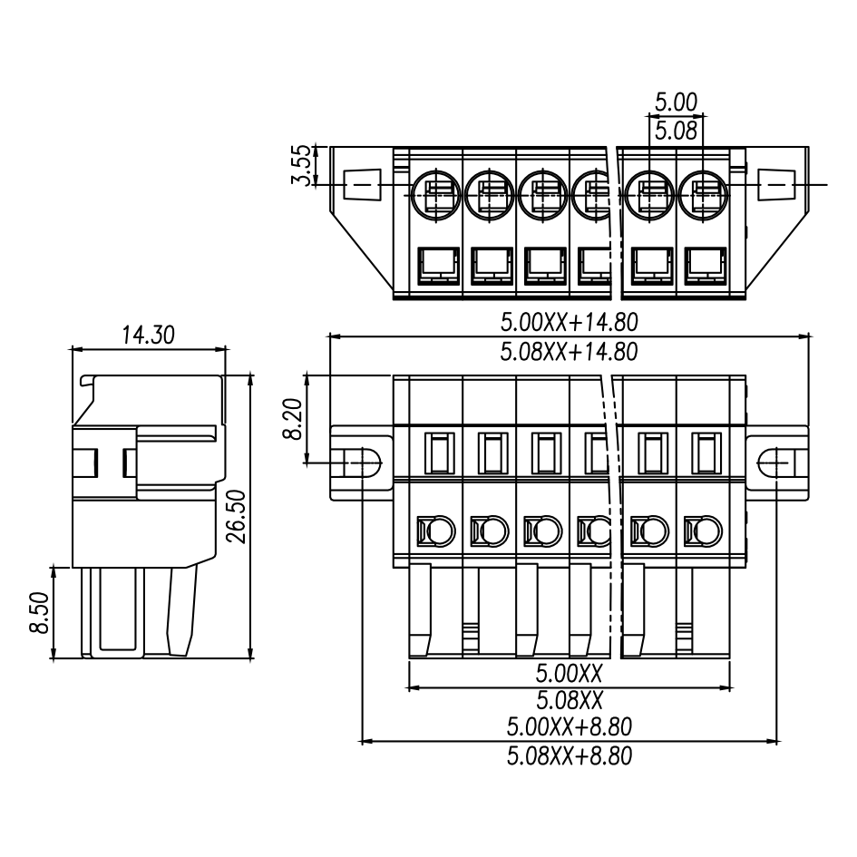 | Pitch / Poles | 5.08 mm / 2 ~ 24 poles | ||