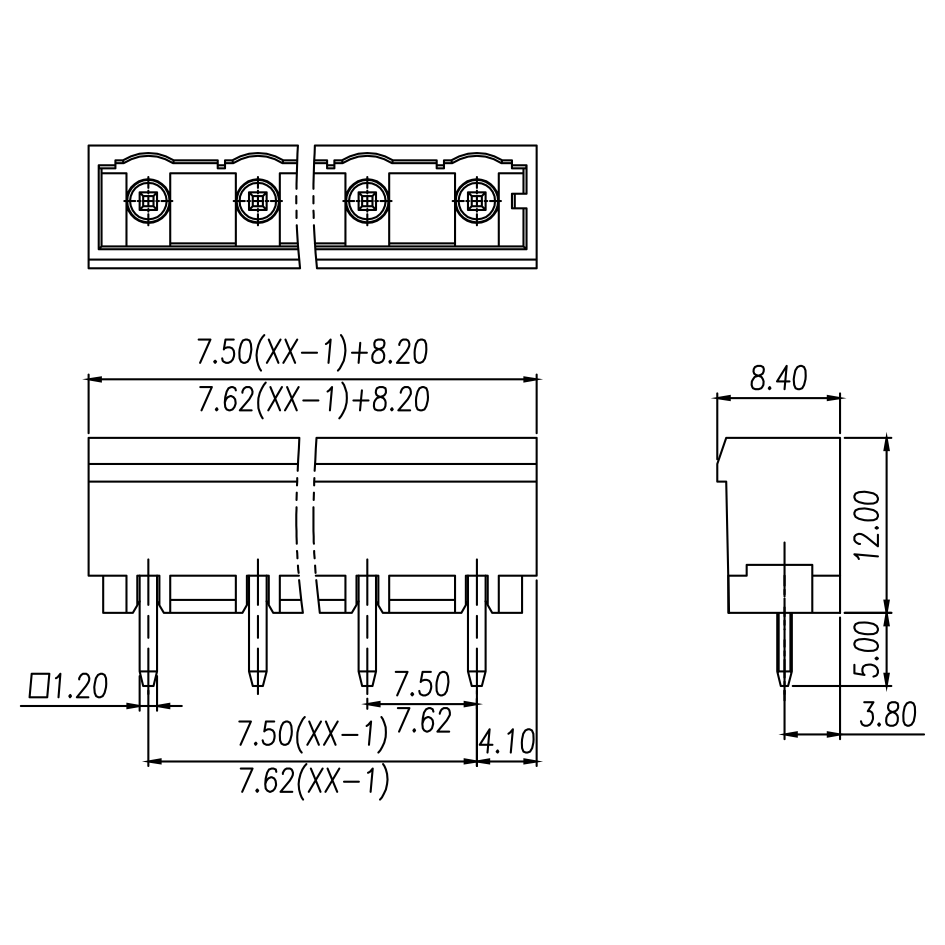 Pitch / Poles 7.62 mm / 2 ~ 24 poles
