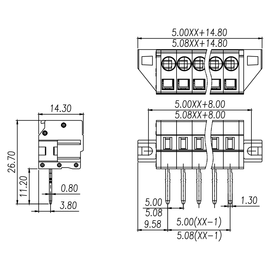 | Pitch / Poles | 5.08 mm / 2 ~ 24 poles | ||